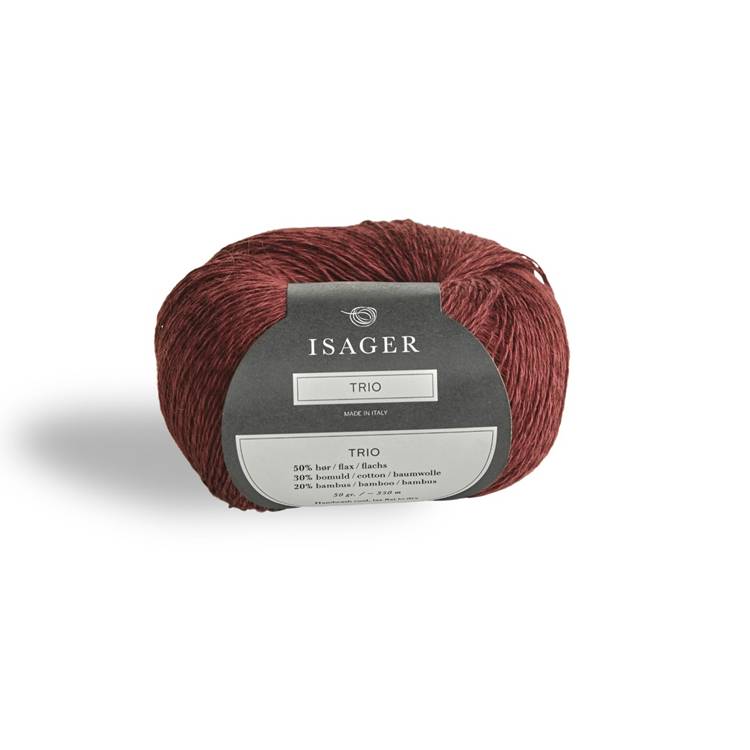 ISAGER Trio 1 składa się w 50% z lnu, w 30% z bawełny i w 20% z lyocellu. Włóczkę tę możesz przerabiać pojedynczo, podwójnie, a nawet potrójnie. Możesz także łączyć ją z innymi włóczkami tego producenta. Trio 1 znajdziesz w bogatej palecie kolorystycznej, dopasowanej do innych serii ISAGER, dzięki czemu zyskujesz ogromne możliwości łączenia włóczek ze sobą.
