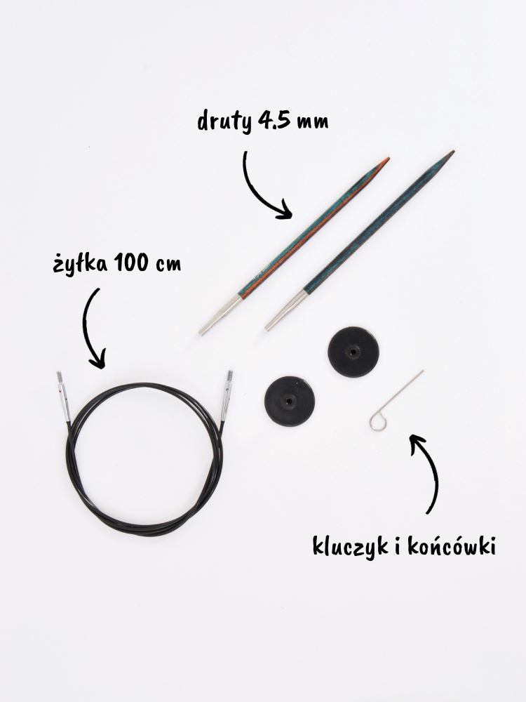 - druty wymienne w rozmiarze 4,5 mm,
